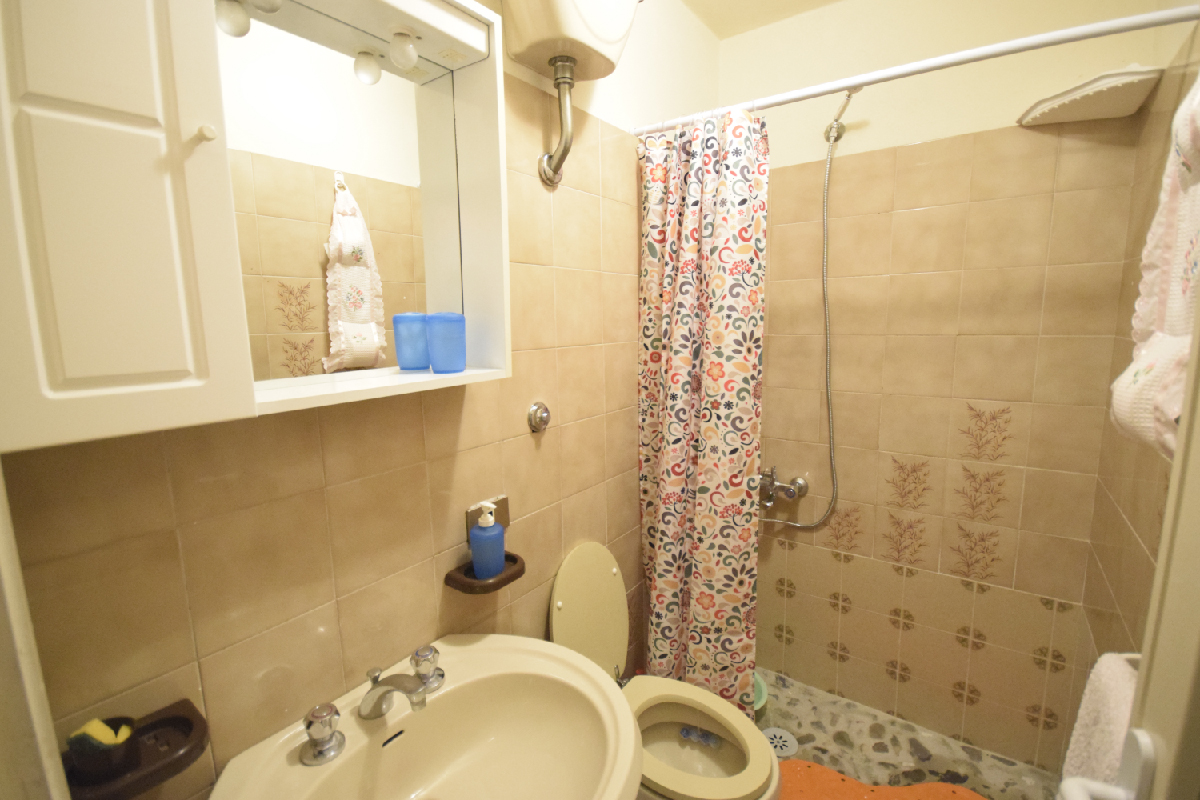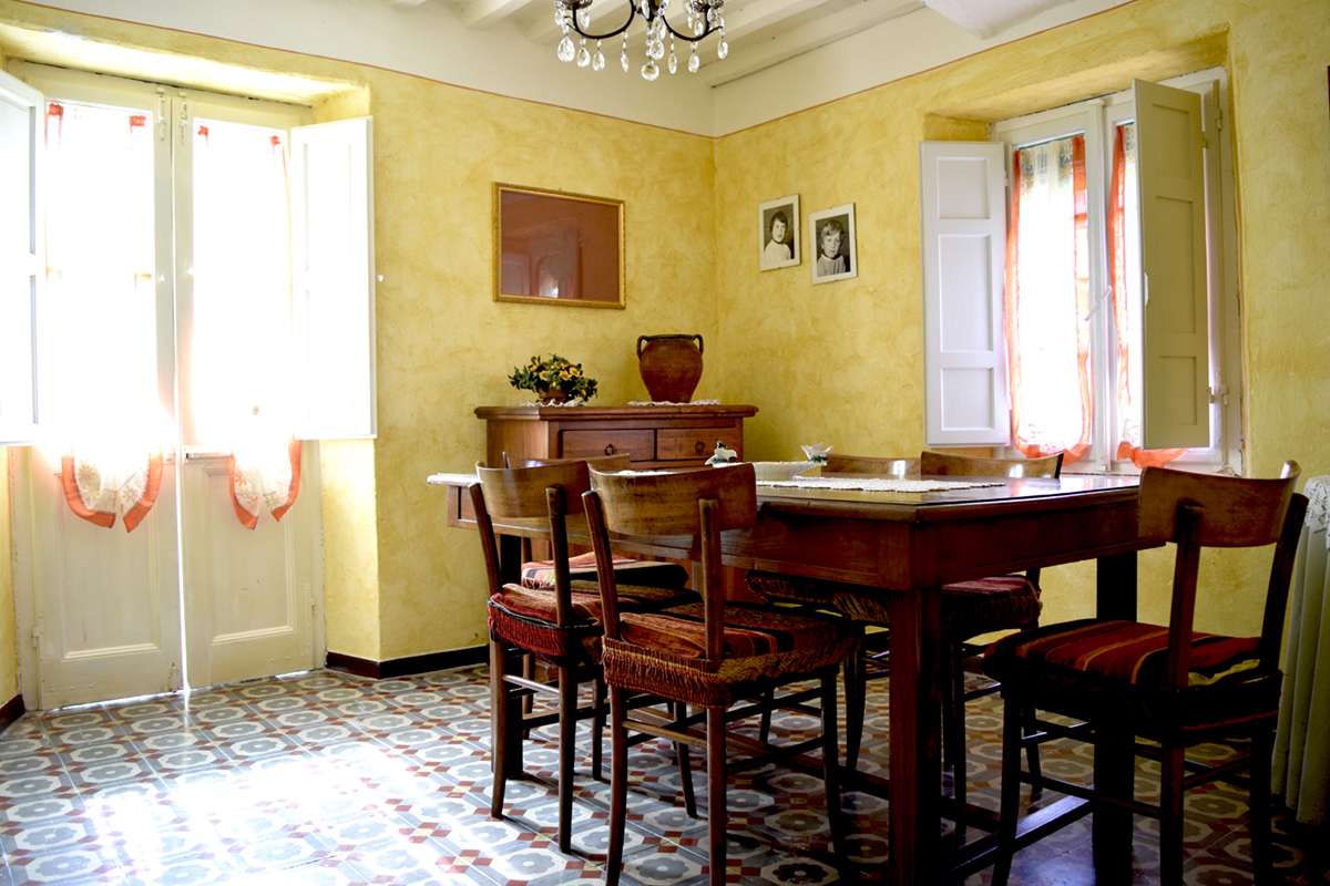 La casa è molto Spaziosa ed Accogliente, al Piano Terra rialzato da qualche scalino troviamo: l'Ingresso, una Sala Soggiorno / Pranzo con TV Color con Antenna Satellitare, un Divano, due Poltrone e un grande Tavolo da Pranzo; una Sala da cui si accede ad un Terrazzo attrezzato con Tavolo e Sedie; una Cucina con Piano Cottura, Forno e Caminetto, Tavolo e Sedie. Infine c'è un Ripostiglio con Congelatore, Lavatrice e Lavatoio.